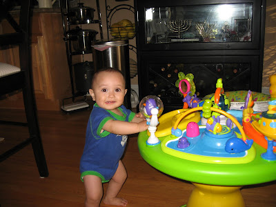 Noah is a cruising expert now and has show us moments of free standing in the past week. We're expecting his first steps with the next week or so.